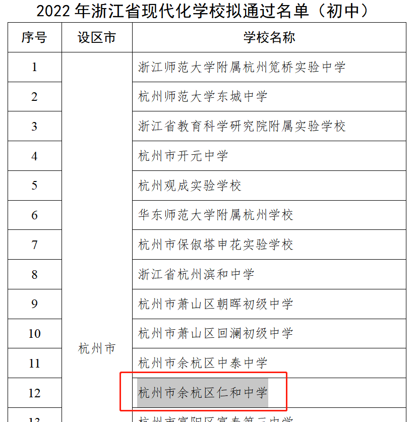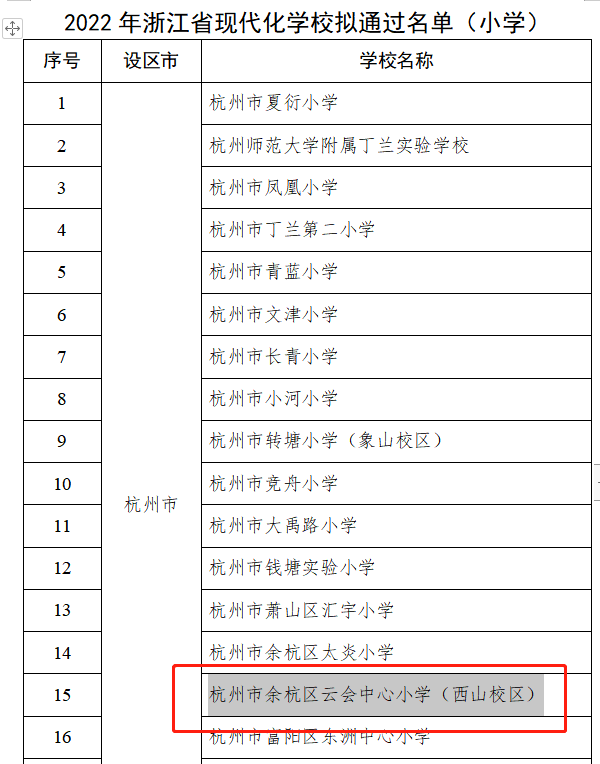 02、  云会中心小学(西山校区)仁和中学入选2022年浙江省现代化学校。