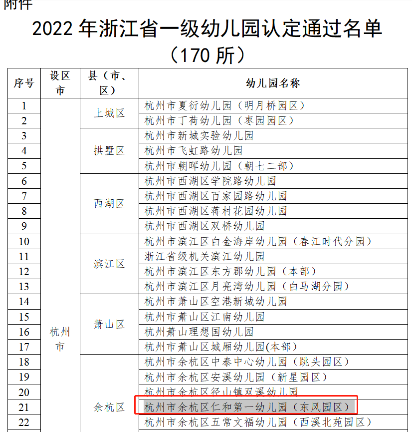 01、  仁和第一幼儿园(东风园区)通过2022年浙江省一级幼儿园认定!