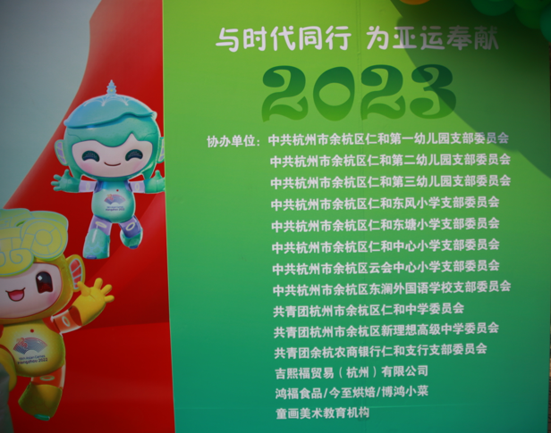 1.迎亚运:学生闲置物品义卖、企业产品义卖;同心绘亚运横幅长卷。