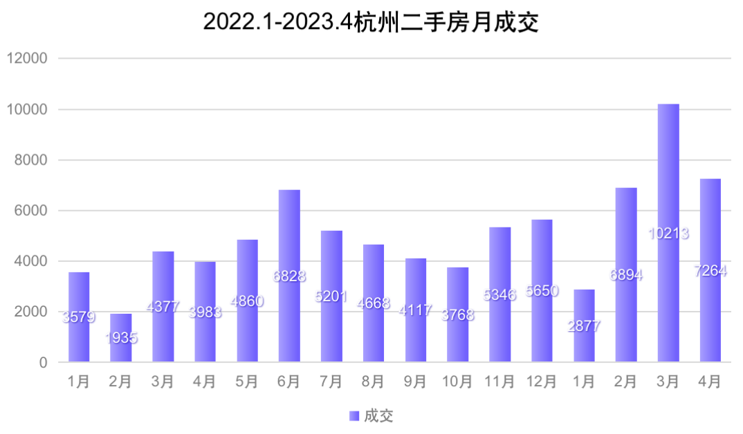 上月(4月)杭州二手房成交数,相比3月跌约28.8%。