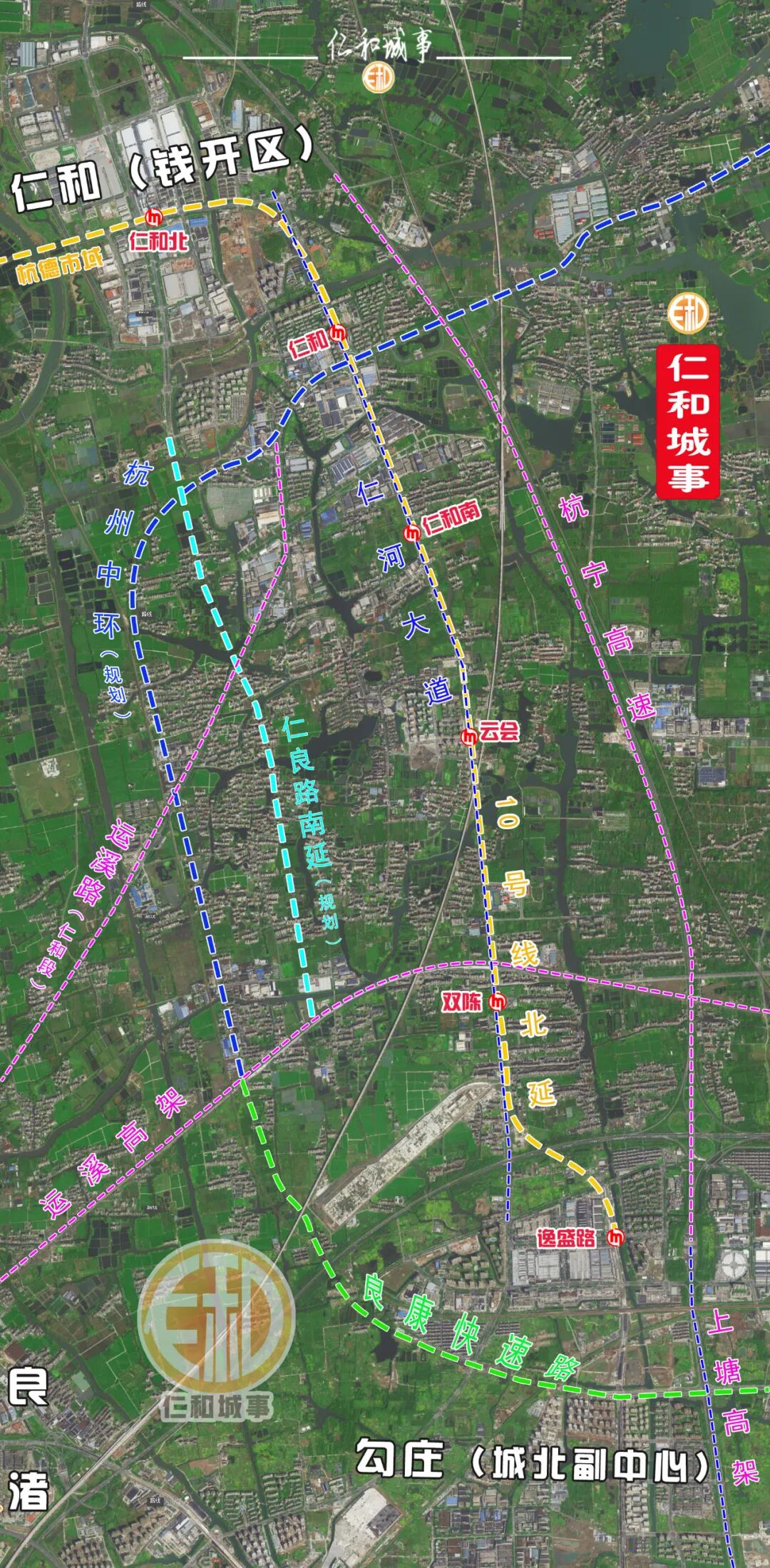进入杭州的北大门-仁和,有杭宁高速、仁河大道、运溪路等,在不远的未来,还将新增几条大动脉,分别是地铁10号线北延、仁良路南延,以及杭州中环。