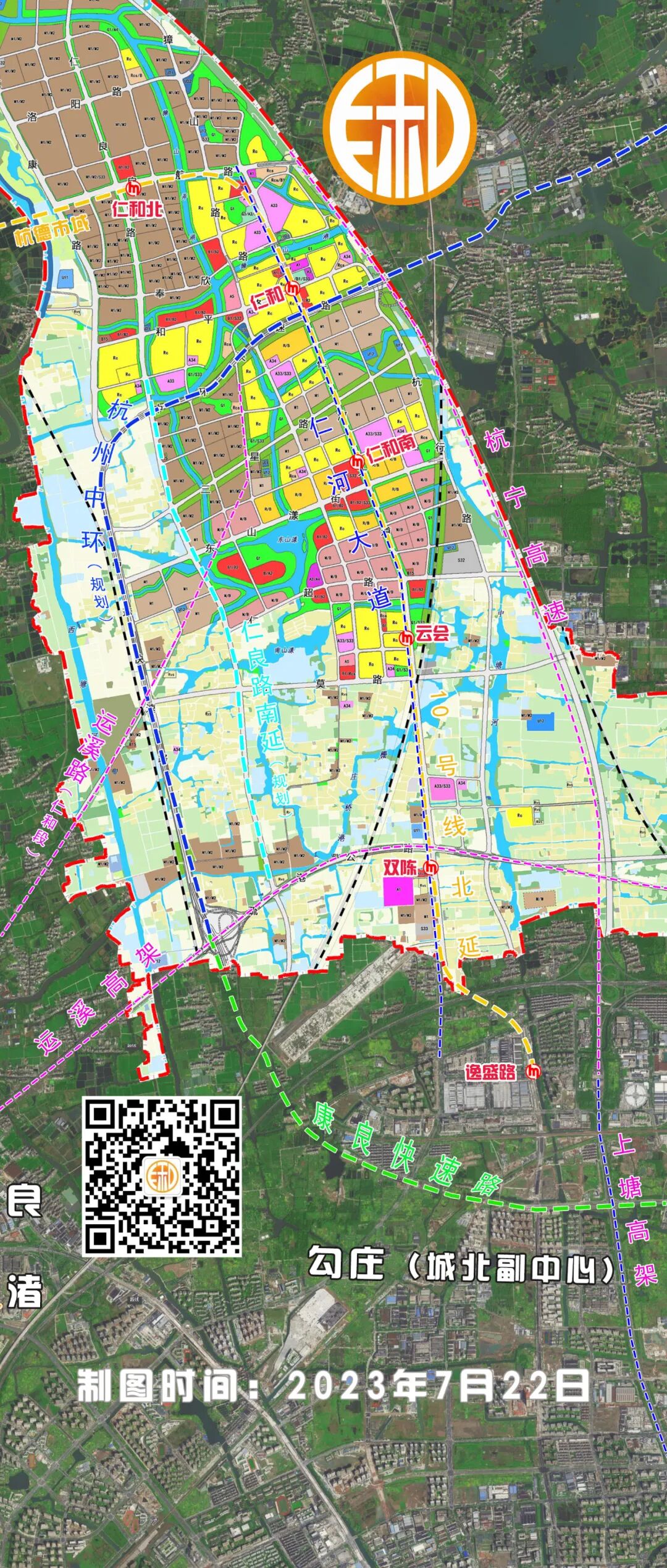 有了这两张高清图,了解仁和规划轻松多了 今天内容很简单,就两张比较实用的规划图。 ❶ 通过结合卫星图与钱开区单元详细规划(草案),并重新绘制了下主要交通要道,得到如下这张规划图。该图已被压缩,如需下载高清图,微信公众号发消息:230722 ▲可放大看 ❷ 如果想了解仁和街道综合交通路网图,可以看以下这张,截取自“钱开区单元(仁和街道)详细规划草案公示” ▲可放大看
