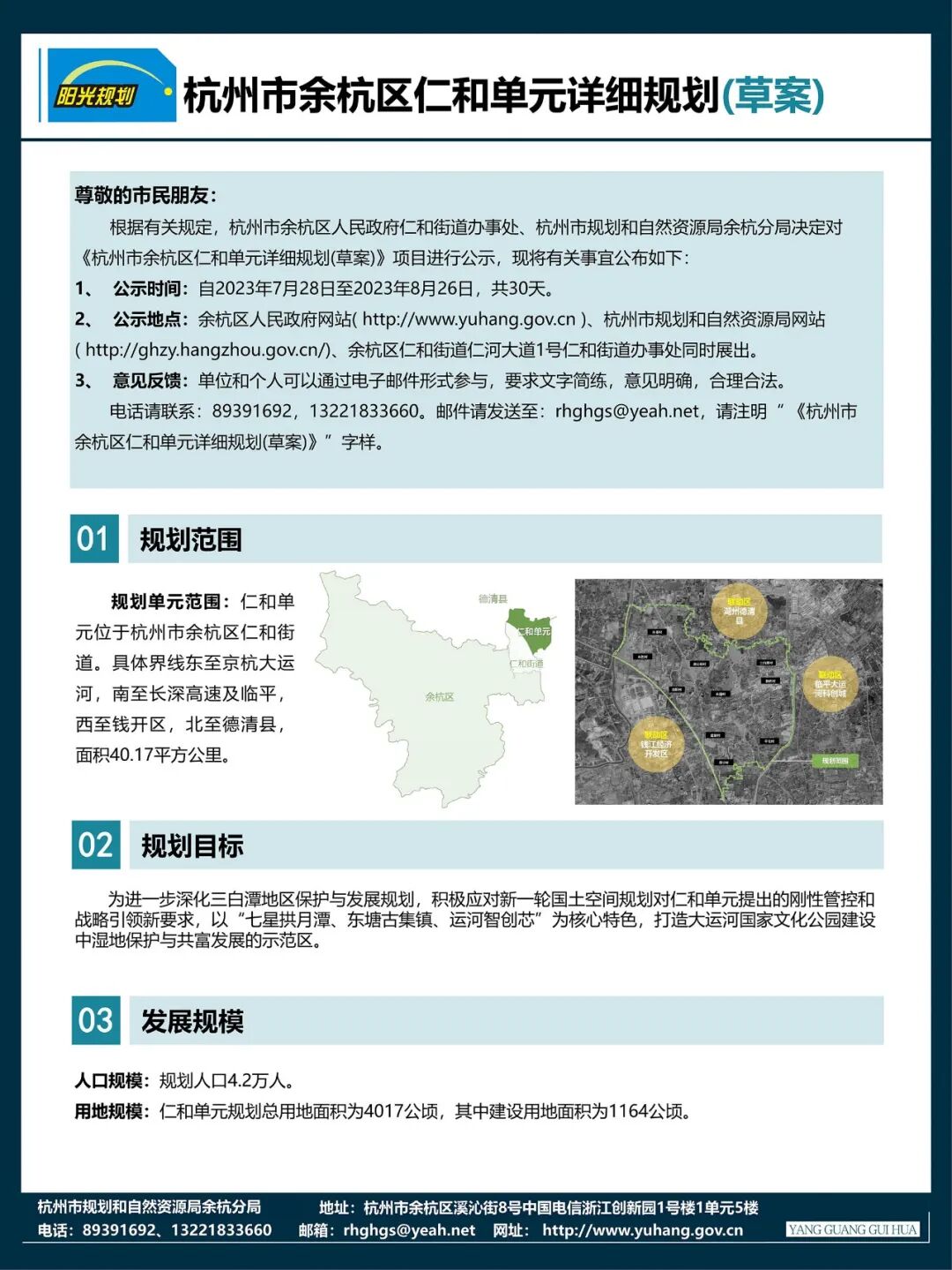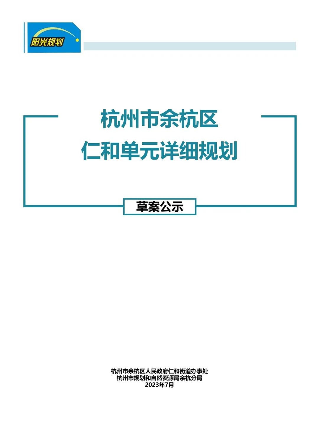 重磅!仁和单元详细规划(官方公示) ★ 内容来源:市规划和自然资源局余杭分局,时间:2023-07-28 ● 相关内容:重磅!钱开区单元(仁和街道)详细规划草案公示 ♥ 如需下载高清图,请发消息:230728