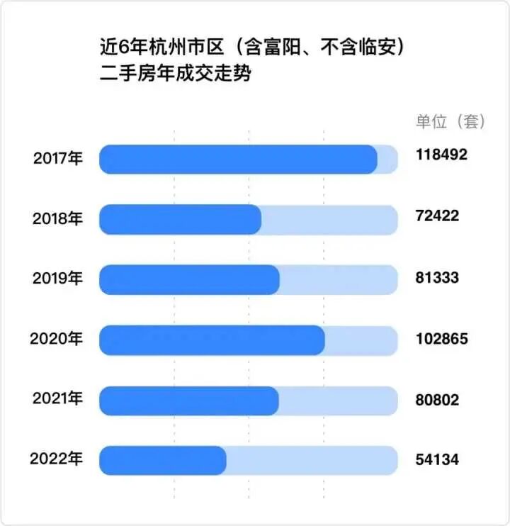 来看一组数据,数据显示,2018年7月杭州市区二手房挂牌量仅为4.3万套。随后,杭州二手房挂牌量几乎是逐月激增,并在2019年11月突破10万套大关,2022年12月突破20万套大关。在这一过程中,虽然有几个月挂牌量下降,但都是昙花一现,挂牌量增长的大趋势不改,最新的挂牌数据,据说,杭州二手房(含商业)挂牌量已突破30万套(何况,成交量持续下跌,也影响到房东的心态,房东们的挂牌积极性也在下降)。