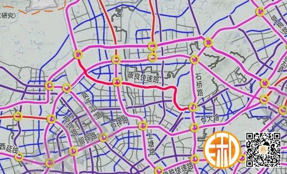▲康良路与上塘高架节点(南北为上塘高架、东西为康良路)