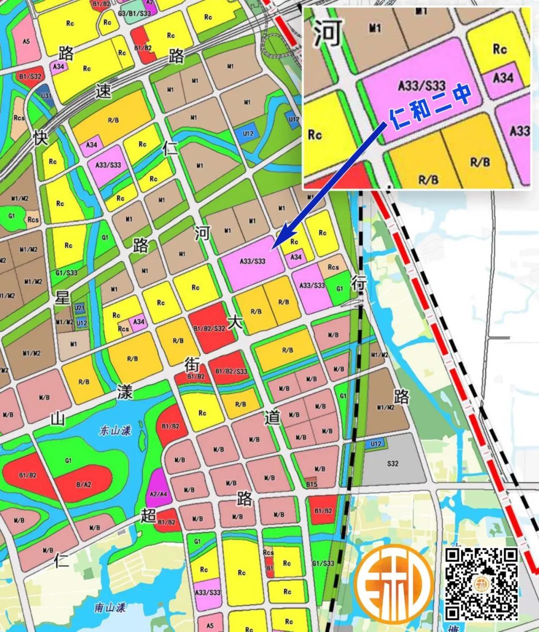 从上图可见,仁和二中建设地点,紧邻10号线地铁站“仁和南站”(东山站),属于仁和街道东山村。