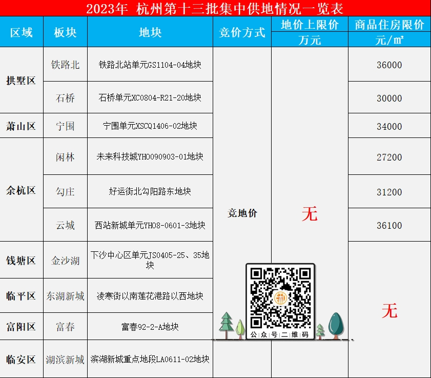 2023年11月9日,也就是今天,杭州第13批次10宗宅地挂牌,随之而来的是众望所归的土拍新规,分别是: