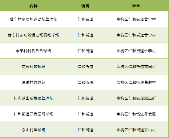 其中仁和街道新建的嵌入式体育场地有这些,看下有你家附近的吗?