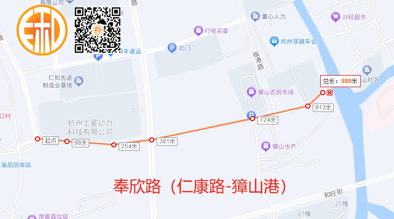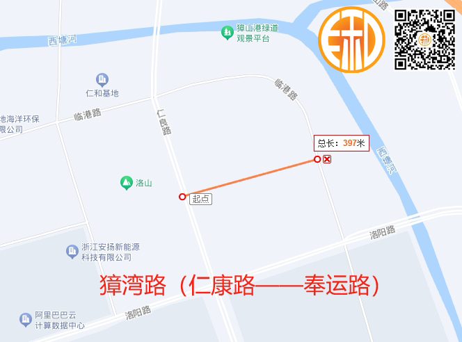 獐湾路(仁康路——奉运路)段全长433米;