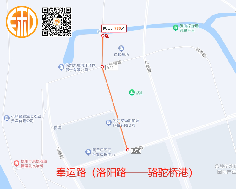 奉运路(洛阳路——骆驼桥港)段全长780米,为城市支路,双向2车道,设计时速30Km/h,沿线与洛阳路、獐湾路、临港路相交;