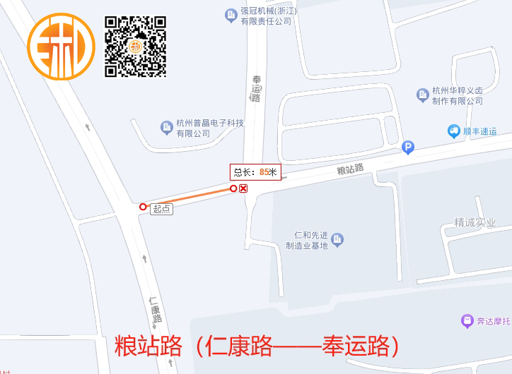 粮站路(仁康路——奉运路)段全长85米,为城市支路,双向2车道,设计时速30Km/h,沿线与仁康路、奉运路相交;