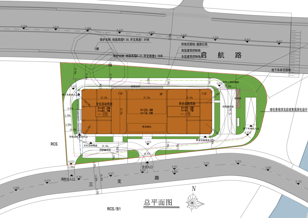 建在这里→洛阳村综合配套服务中心 消息来自杭州市规划和自然资源局余杭分局,从1月26日余杭区政府网发布的公示得知,在北临启航路,南临三支路(离仁和派出所以东200米),总面积为6666平方米(约10亩),将规划建设洛阳村综合配套服务中心。 对比了2023年公示的杭州市余杭区钱开区单元详细规划图,这个地块用地性质Rcs。规划用地性质为文化活动兼容老年人社会福利用地。 按照公示的内容显示,洛阳村综合配套服务中心总建筑面积为29056.66平方米,其中地上建筑面积为19998平方米,地下建筑面积为9058.66平方米,容积率为3.0,建筑密度为34.95%,绿地率为30%。 建筑的总体形态类似U形,其中一幢(西面)规划为文化活动用房,另一幢(东面)为养老设施用房,高度都是49米。连接两幢之间的建筑高度为20米。主出入口位于三支路一侧。 👨🏻💼图片-撰文-编辑:徐昌国 ▍审核👩🏻💼:李美华 👩🏻💻 参考资料之一:关于余杭区仁和街道洛阳村综合配套服务中心项目进行公示的说明|余杭政府网
