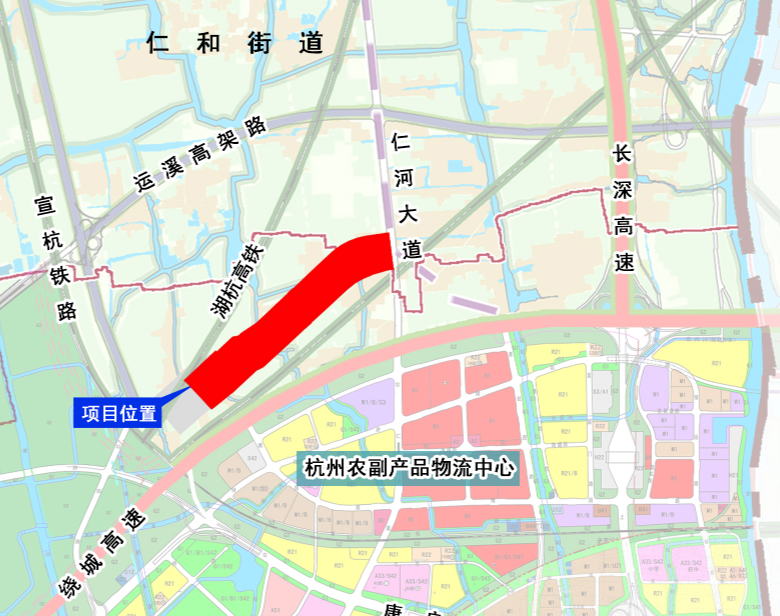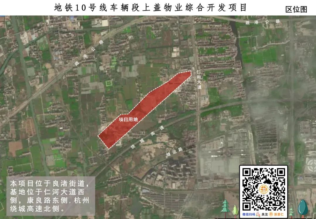 如上图,地铁10号线车辆段上盖物业综合开发项目位于杭州市余杭区良渚街道,基地位于仁河大道西侧,康良路东侧,杭州绕城高速北侧。