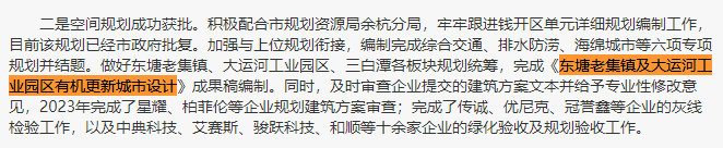 至此之后,几乎就没见到官方再提到项目的进展消息了。不过在开发区管委会2023年工作总结和2024年工作计划,有这样提到:做好东塘老集镇、大运河工业园区、三白潭各板块规划统筹,完成《东塘老集镇及大运河工业园区有机更新城市设计》成果稿编制。