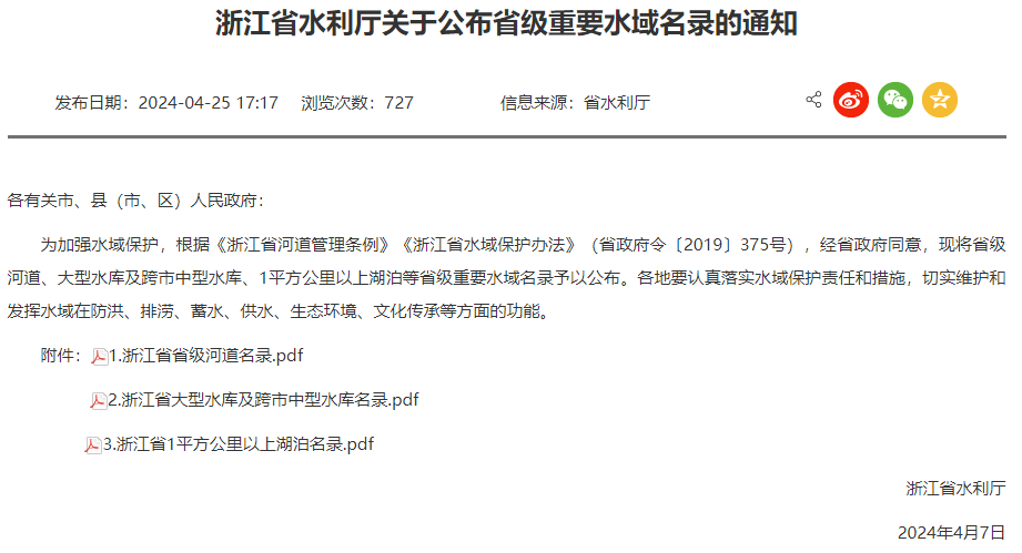 此外,浙江省水利厅这样做的目的是为了加强水域保护,要求各地要认真落实水域保护责任和措施,切实维护和发挥水域在防洪、排涝、蓄水、供水、生态环境、文化传承等方面的功能。