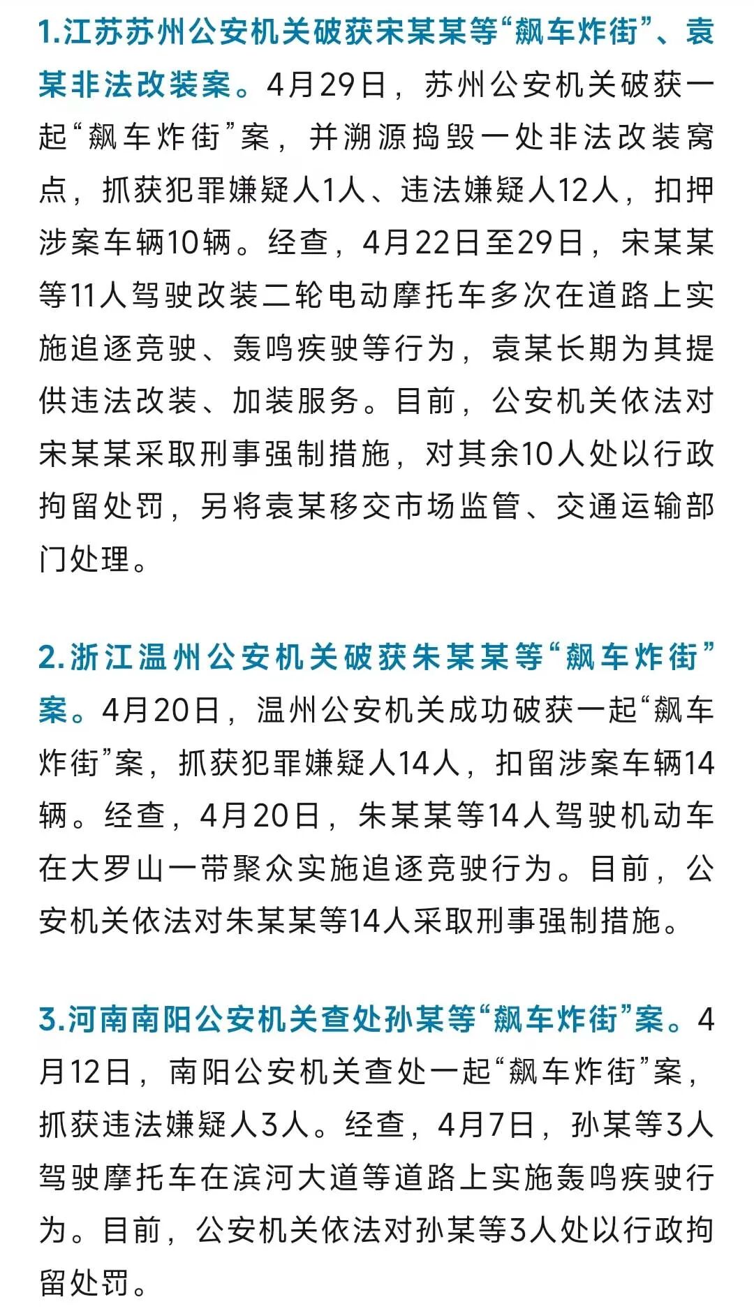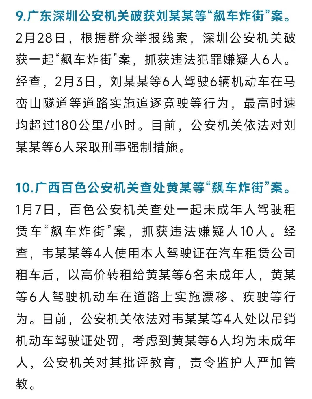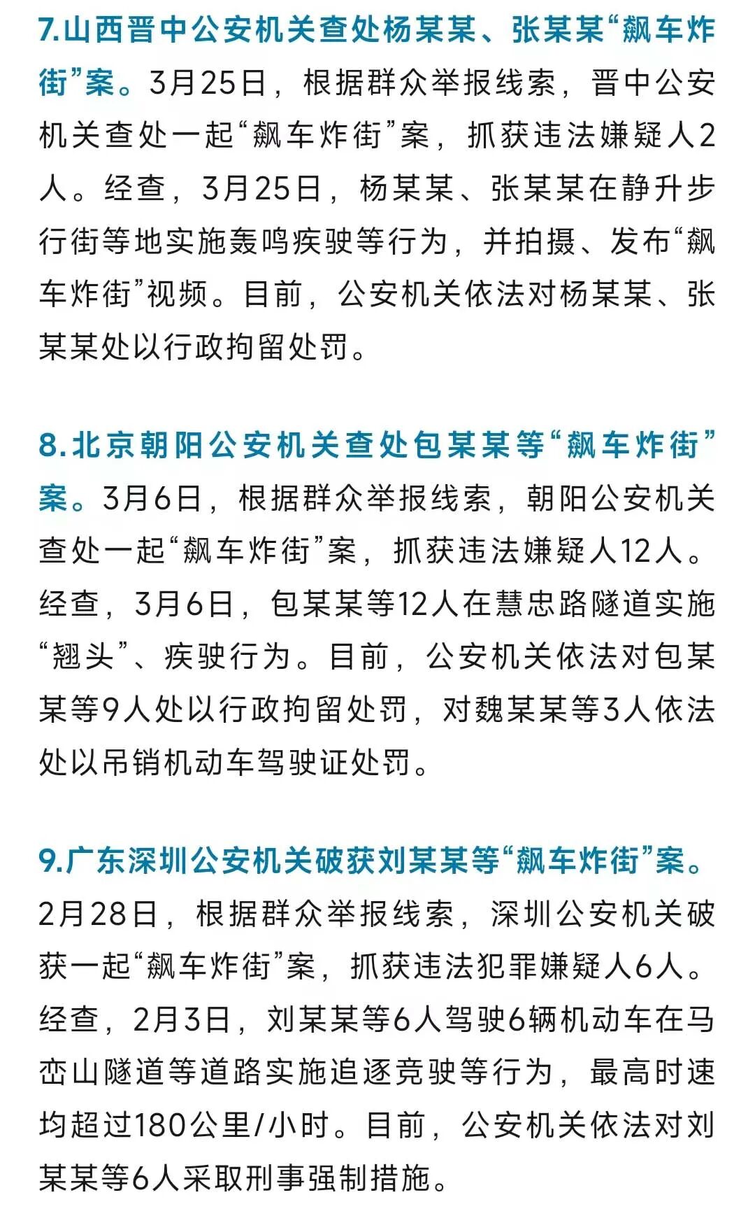 以下是6月份,公安部公布打击整治“飙车炸街”违法犯罪10起典型案例: