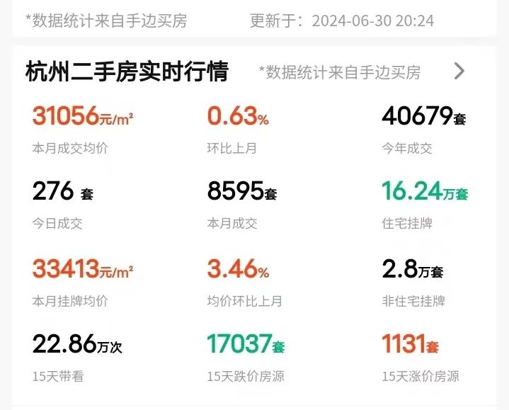 2024年上半年,杭州二手房成交40679套,尤其是“新政”的接连出台,大大推动了杭州二手房的成交,成交量也连续四个月保持在八千套/月的范围。如此稳定的高成交量,放眼当前全国楼市,都十分难得的。
