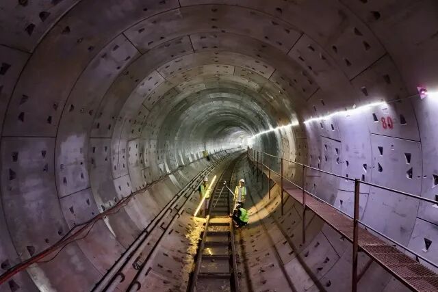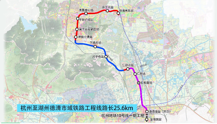 杭德市域铁路项目,其中地下段13.1公里,共6座车站,高架段12.5公里。目前,杭州至湖州德清市域铁路Ⅰ标段6座车站全部封顶,14条隧道顺利贯通,铺轨工程预计年底结束。