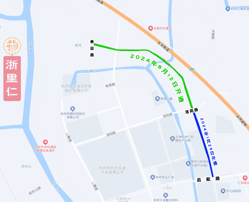回顾下,獐山北路(启航路——洛阳路)段全长877米,为城市次干路,双向4车道,设计时速40Km/h,沿线与启航路、劳武路、洛阳路相交;余杭交警通告2024年1月29日此路段开通。