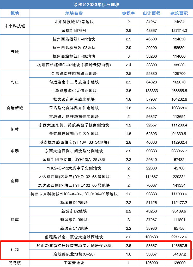 而2024年,余杭区一共4宗地块出让,其中云城和勾庄各1宗,南湖中泰2宗,没有仁和街道的住宅地块。