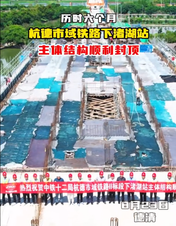 这标志着杭德市域铁路德清段所有车站都已封顶,项目地下段逐步进入铺轨阶段。