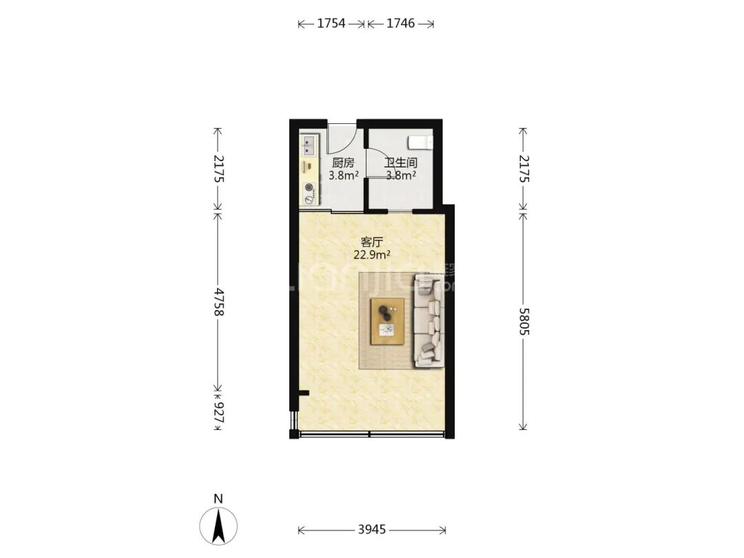 | •户型 | 1室1厅1卫 | •配套 | 家具家具齐全 |