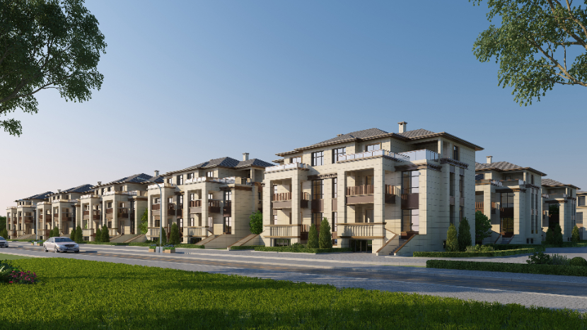 据悉,该项目设计为两户一体的“联排别墅”,共有地上三层住宅和一层储藏室,顶层设有露台,且整体为中式风格,外观简约大气。